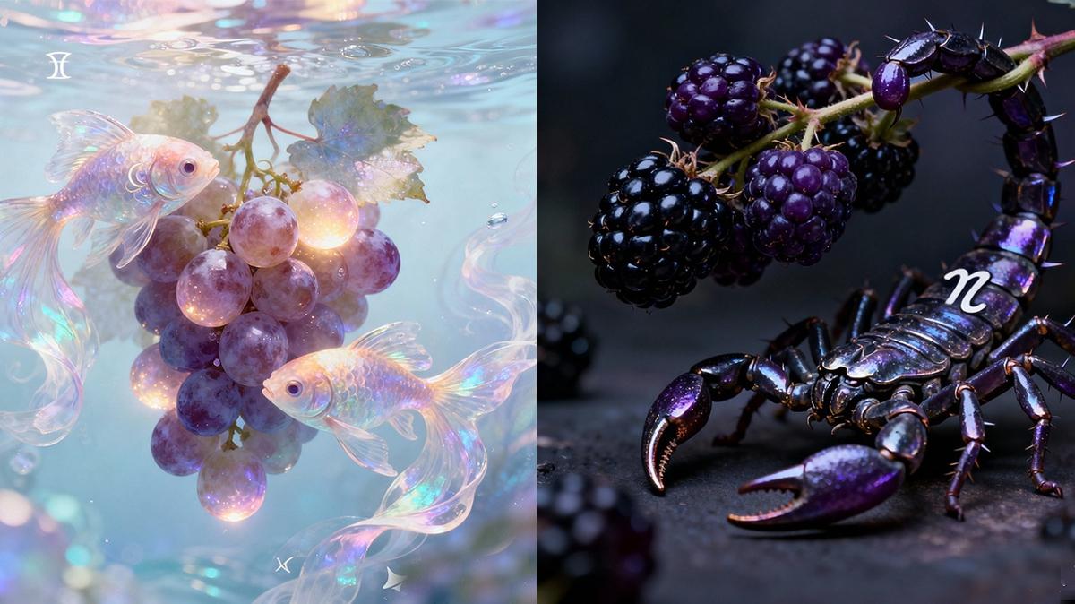 Balık burcu, duygusal ve hayalperesttir. Üzüm, tatlı ve besleyici yapısıyla Balık burcunun duygu dünyasını simgeler. Bu burç, minik ama etkili detaylarla hayatı daha anlamlı kılmaya çalışır, tıpkı bir salkım üzüm gibi.